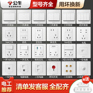 公牛开关插座官方官网86型家用墙壁带五孔面板多孔开关旗舰专卖店