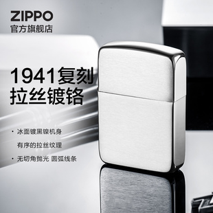 Zippo正品 防风煤油打火机之宝1941复刻拉丝镀铬送男友生日礼物
