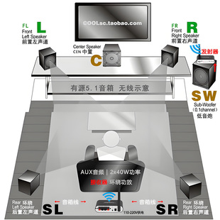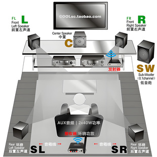 5.8G无线5.1环绕音箱用功放发射器影院后置立体声50W接收器放大器