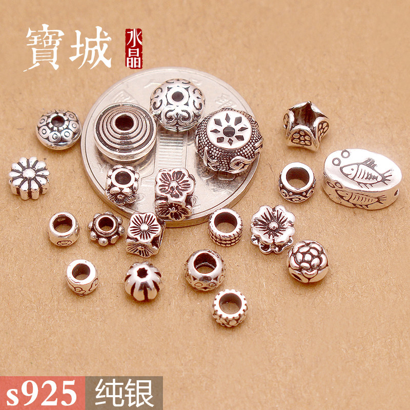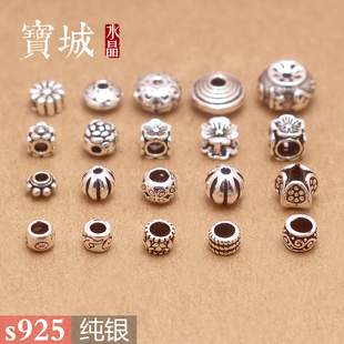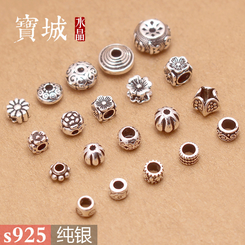 S925纯银隔珠背云桶珠 泰银配件DIY石榴石水晶手链饰品银配饰多款