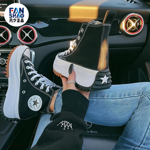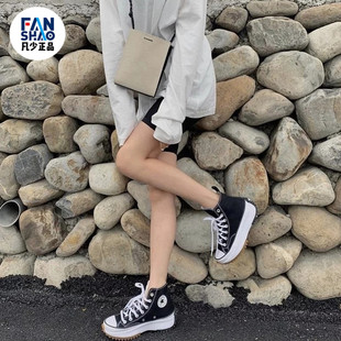 166800C Hike黑白色增高厚底休闲情侣帆布鞋 Converse匡威Run Star