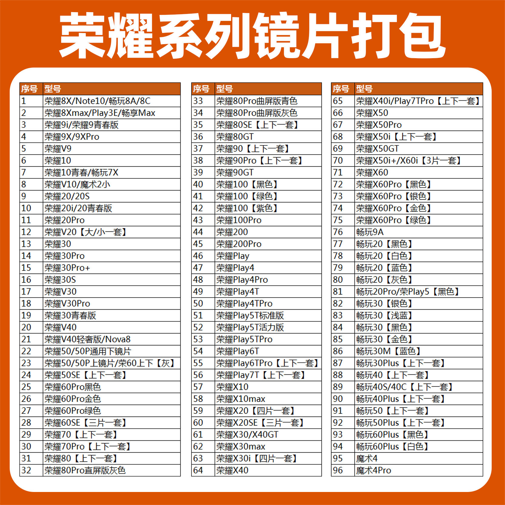 X40i X50i X30i后镜片 X20SE 镜头玻璃适用荣耀x30后摄镜片X10Max