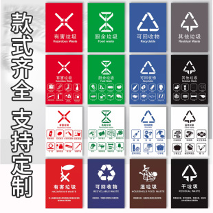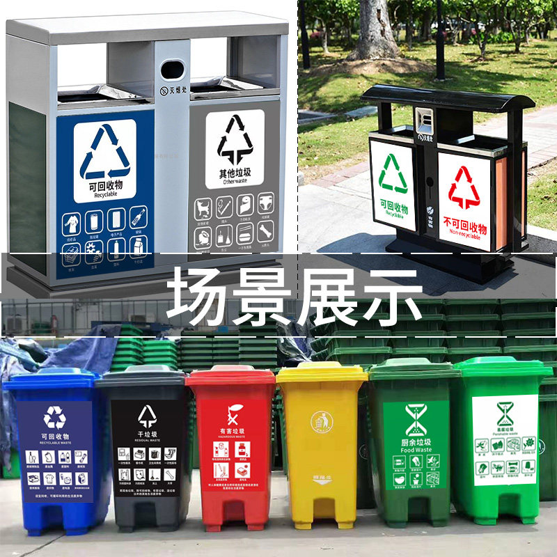 新国标版 垃圾分类贴纸标识贴厨余可回收垃圾桶防水环保标签贴垃圾桶标识贴有害垃圾易腐垃圾厨余垃圾箱北京市