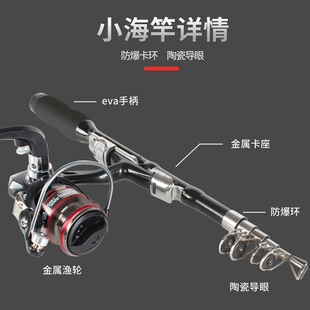 鱼竿迷你海竿套装 冰钓竿小海竿超短便携甩竿全套单竿金属轮海杆抛