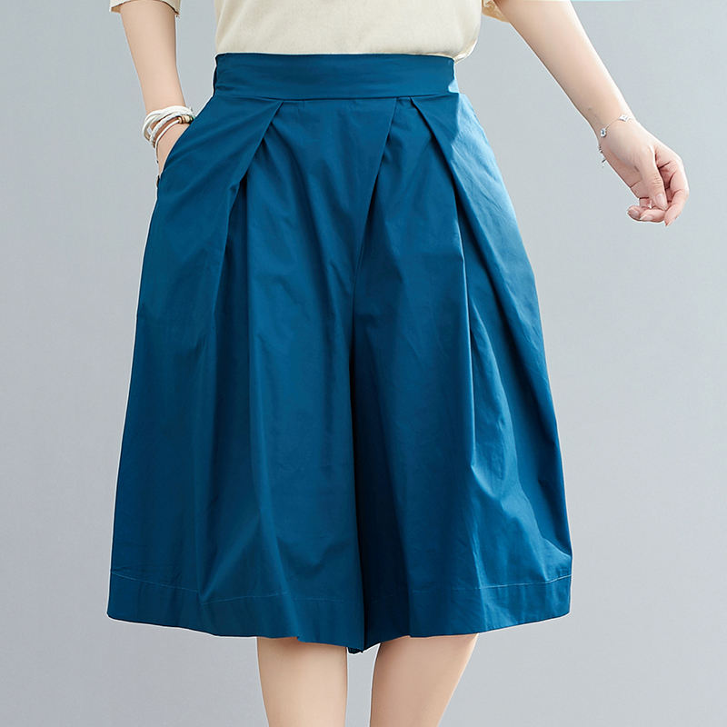 新款 百搭松紧腰阔腿裤 棉麻大码 裙纯色文艺休闲五分裤 女 裤 2024夏季
