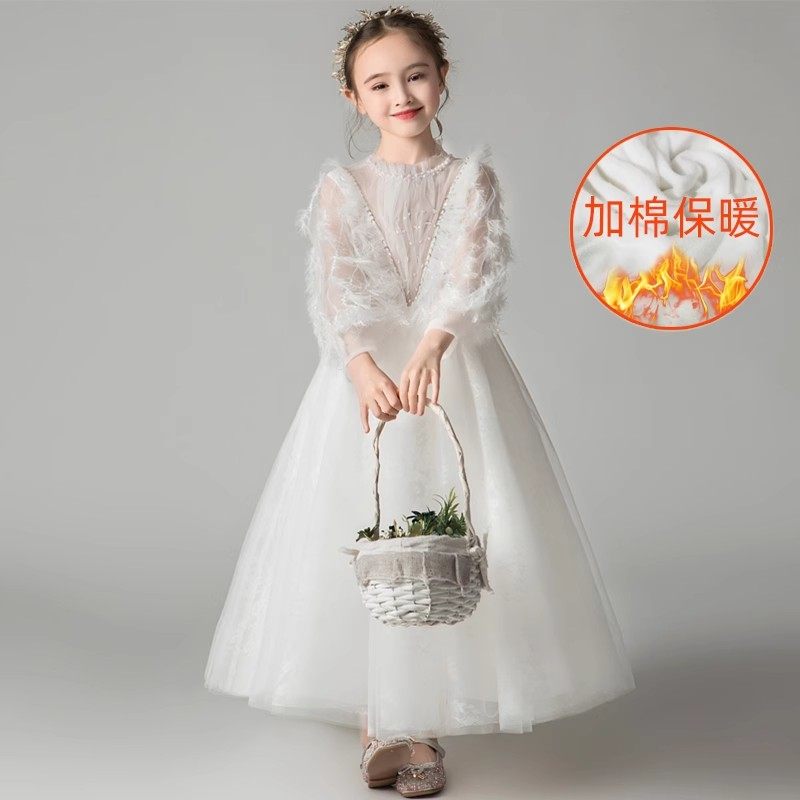 主持人礼服女童冬装 加厚儿童钢琴演奏公主裙花童婚礼小女孩演出服