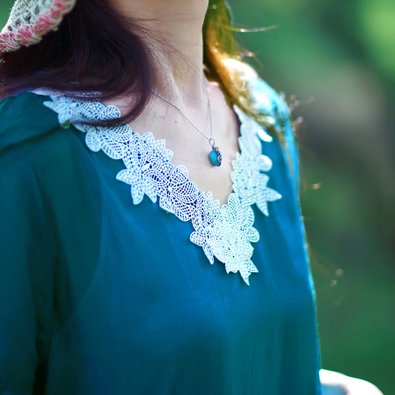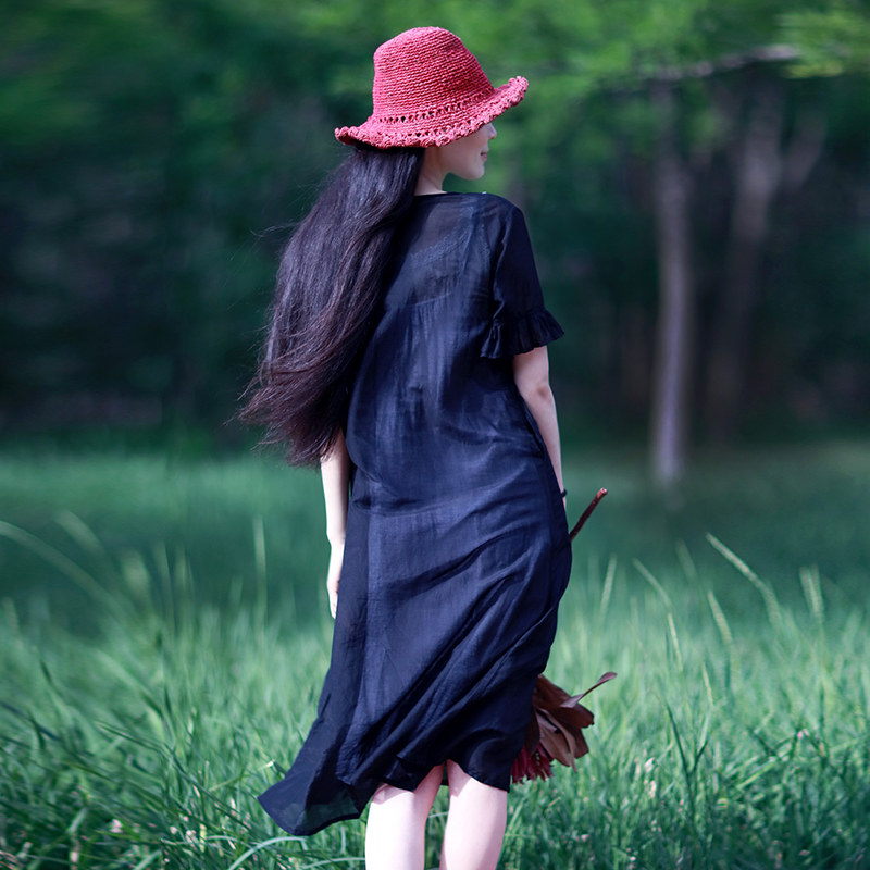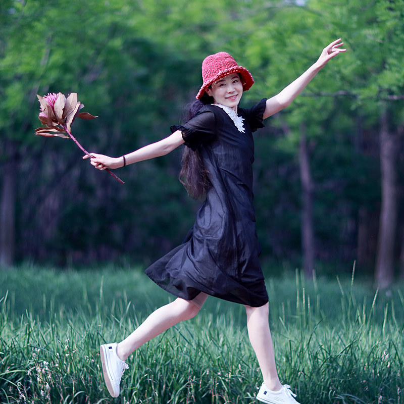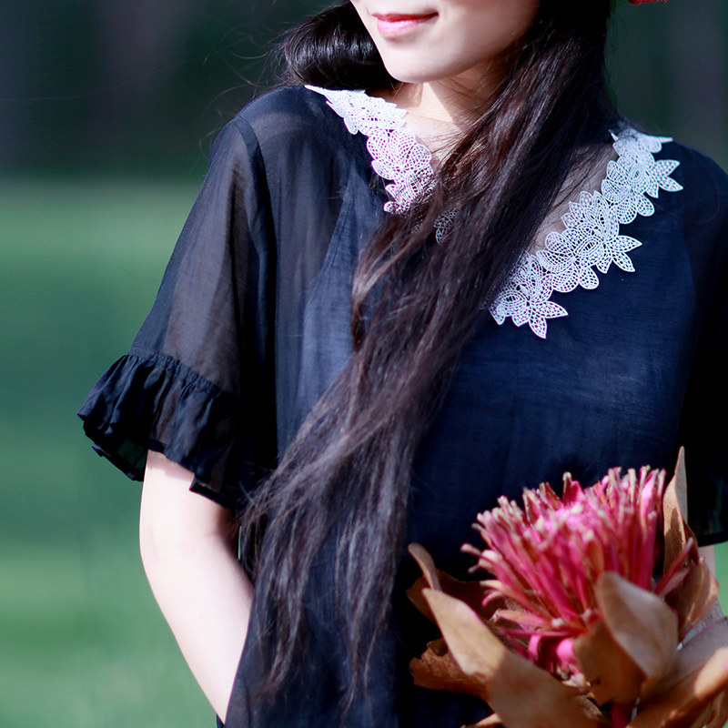 短袖 森女轻薄真丝棉花边V领飘逸中长款 连衣裙HQ782 新品 2020夏季