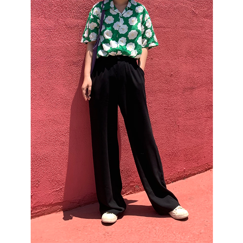 黑色阔腿直腿显高显瘦 休闲裤 化学少女 H1「惊天大长腿」高腰西装
