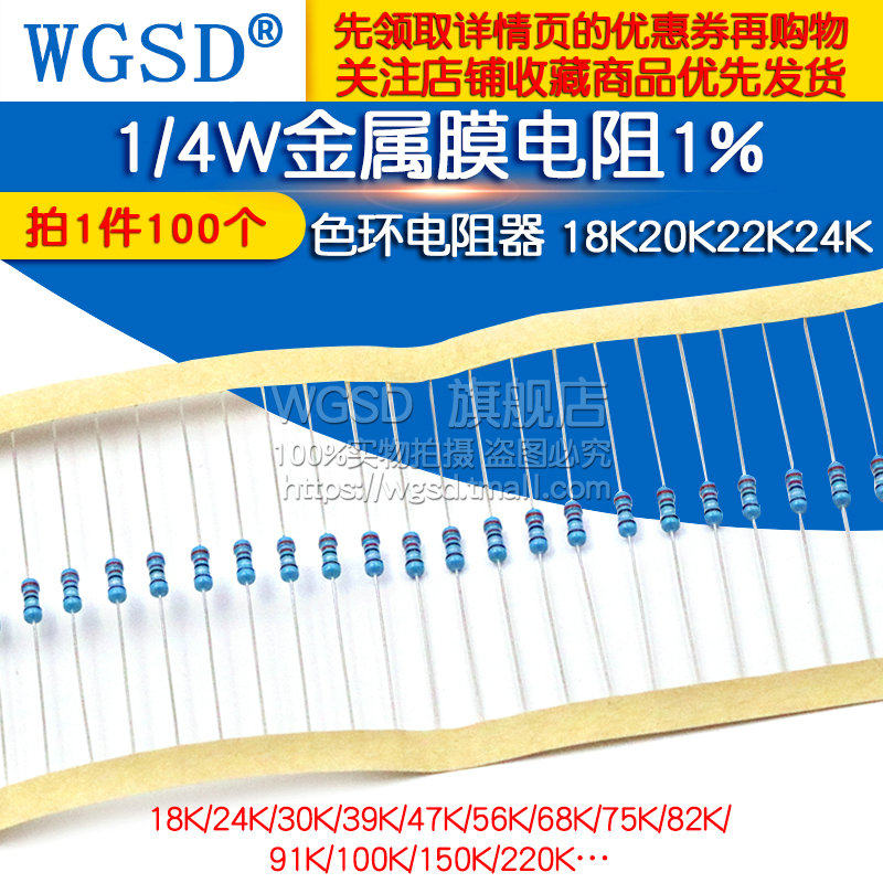 件1%色环2k 4.7K 10K 100欧120欧姆1M 金属膜电阻器1 100K 4W元