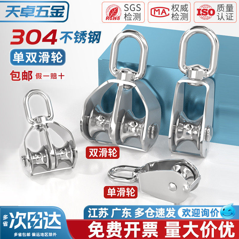 304不锈钢滑轮钢丝绳U型吊环定滑轮单双轮子起重滑轮吊钩省力工具