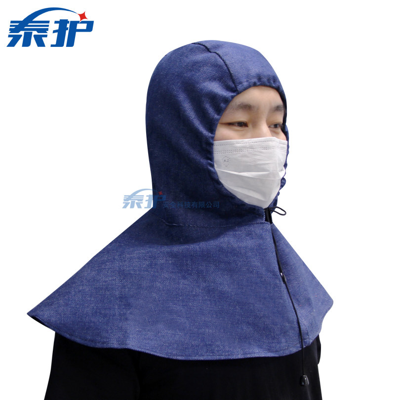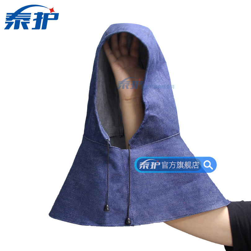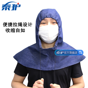 牛仔布紧绳披肩帽 加大防尘风帽系带无帽檐耐磨劳保披风搬运防护