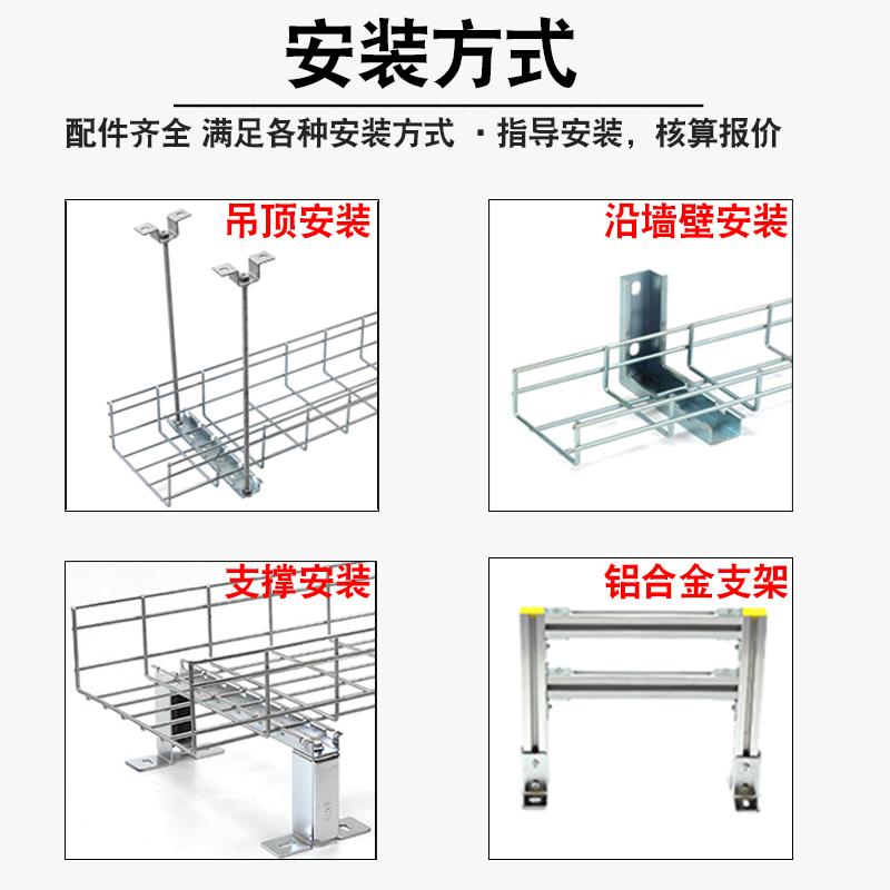 网格桥架线槽综合布线网络镀锌线槽机房开放式 网状钢丝电缆走线架机房光纤走线工地厂房设备流水线工作台布线