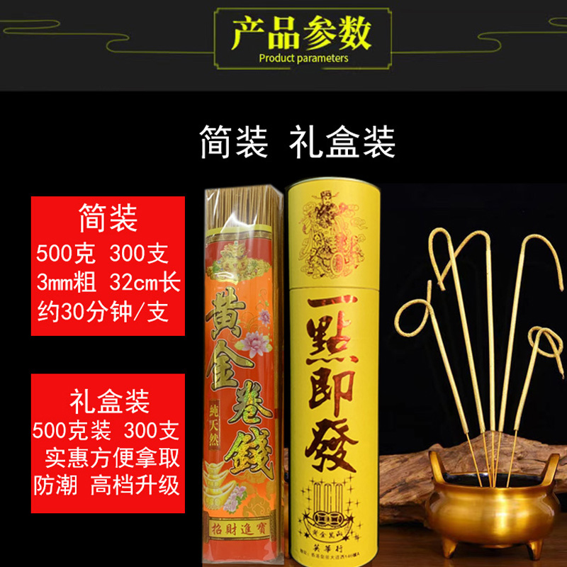 无烟黄金卷钱香发财香金香居家供香佛香33cm39cm49cm竹签香勾炉香
