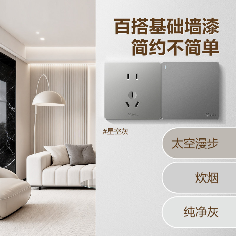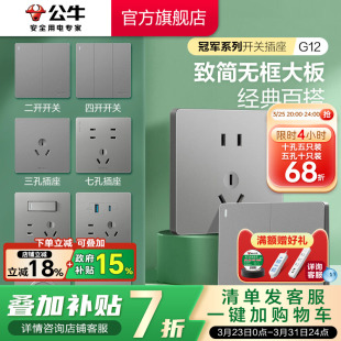 公牛官方旗舰店墙壁开关插座16A空调五孔10A面板暗装 家用g12灰