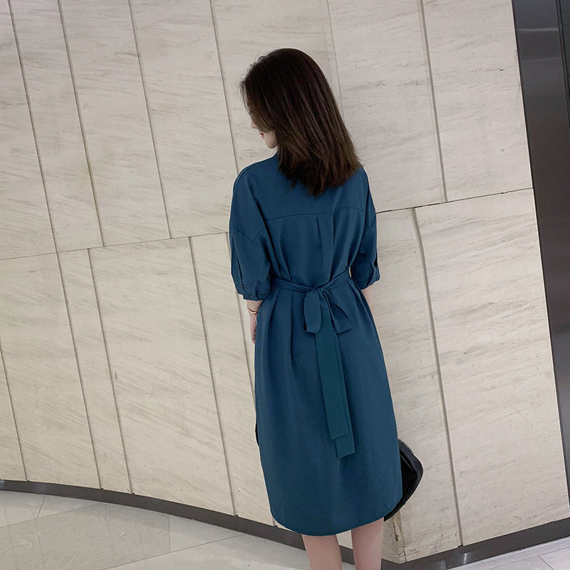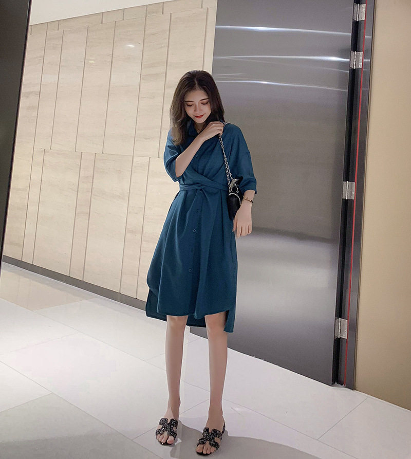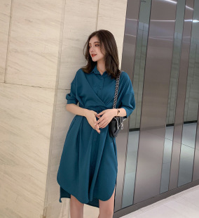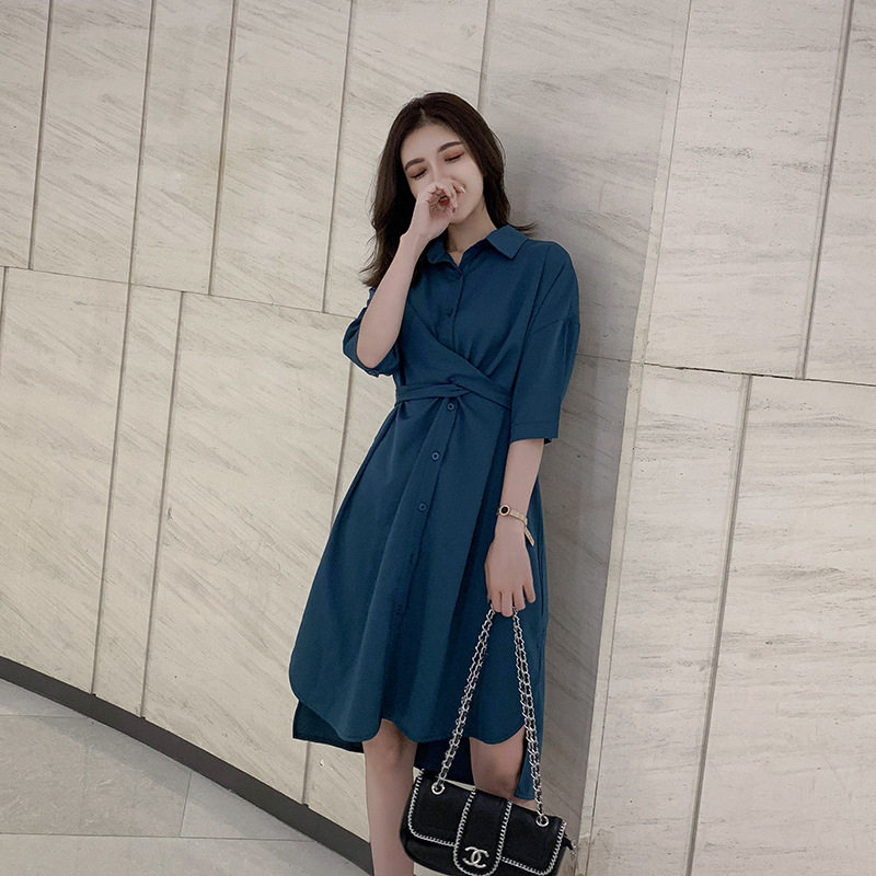 样品缺货连衣裙夏2019衬衫 chic连衣裙 连衣裙收腰显瘦垂感中长款