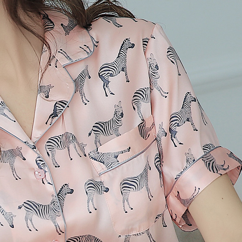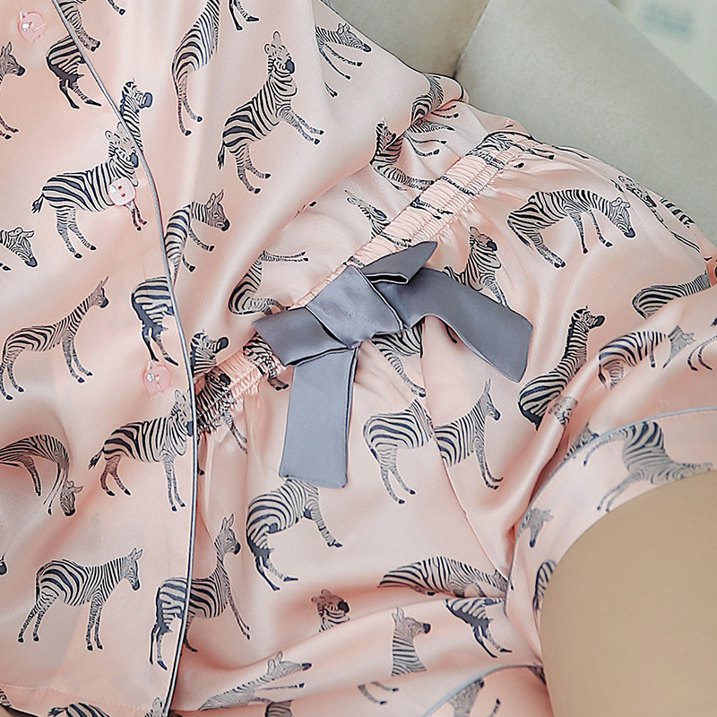 套装 真丝家居服套装 2020夏季 短袖 睡衣女式 蕾恰100%真丝睡衣女夏季
