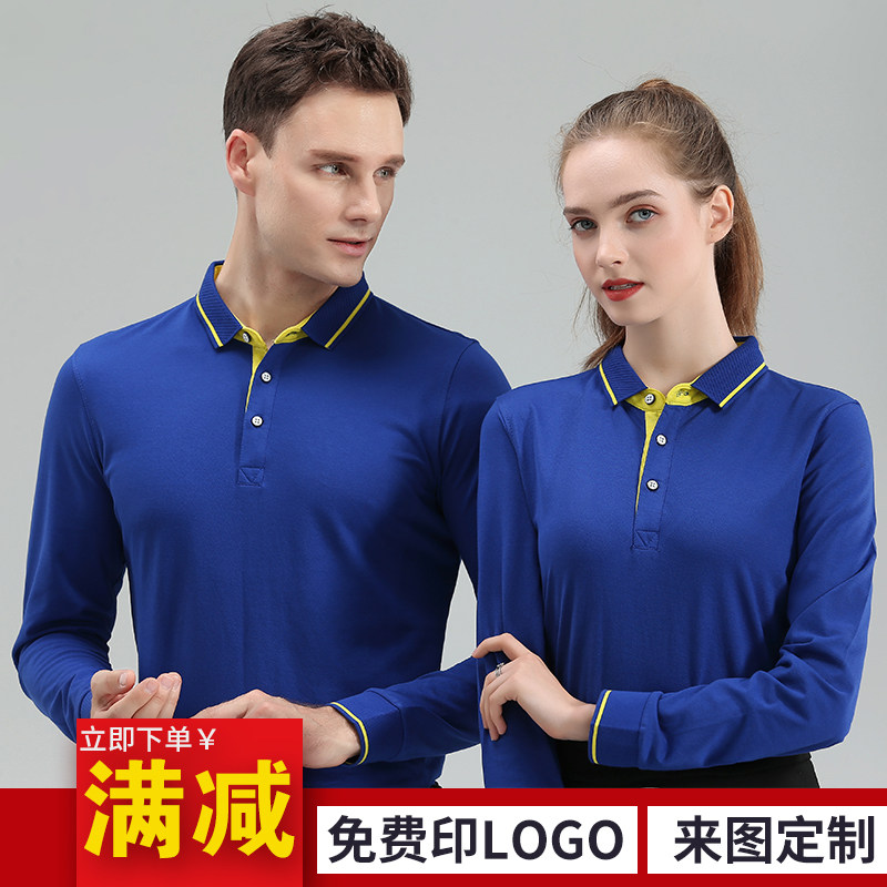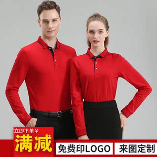 翻领企业广告POLO衫 印LOGO微商酒店前厅服务员工服 工作服T恤长袖