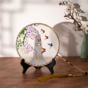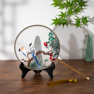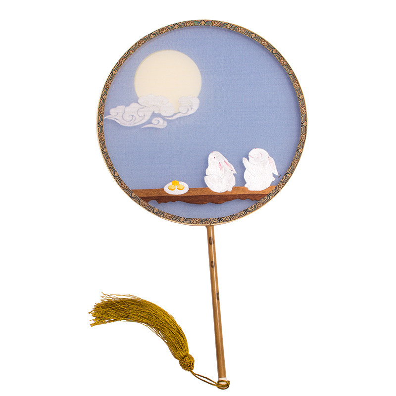 苏州双面绣扇手工刺绣月兔宫扇中国风苏绣团扇绣花扇子中秋礼品