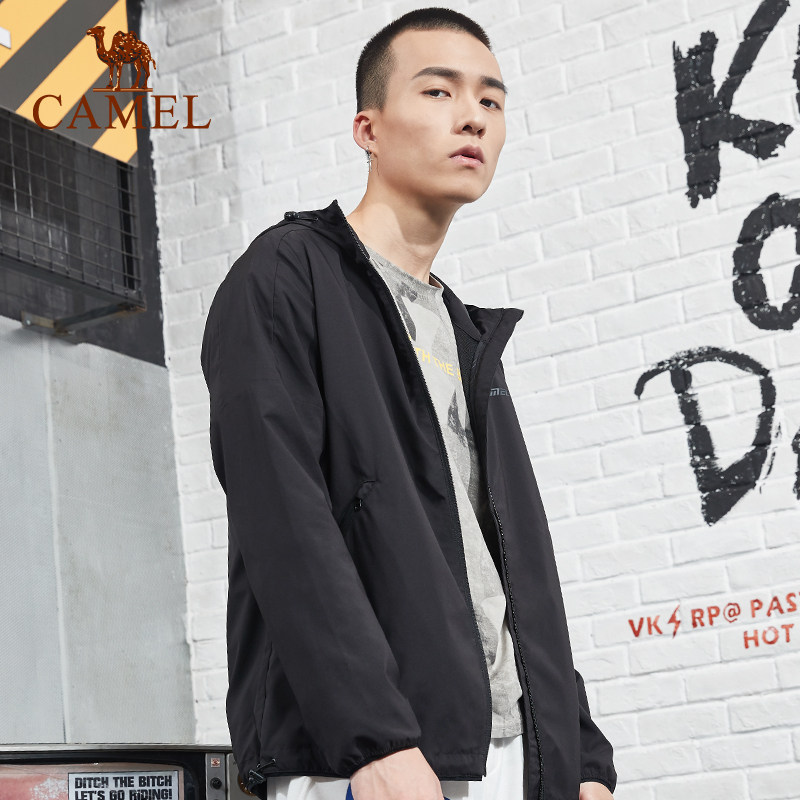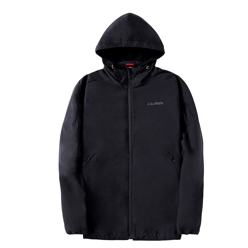 骆驼运动外套女冬季 加绒连帽软壳外套户外登山防水防风黑色夹克男