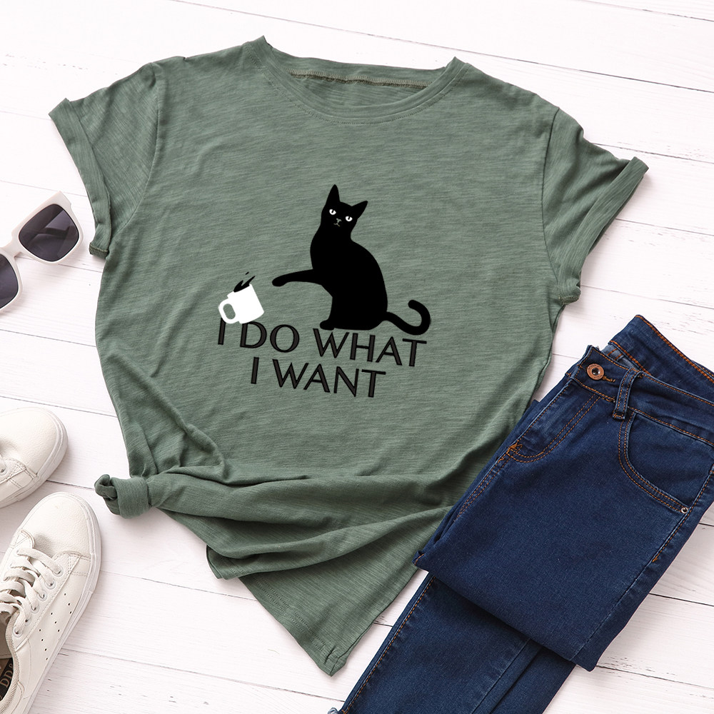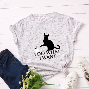 5X圆领学生短袖 跨境搞怪猫咪大码 纯棉T恤 ebay亚马逊新款 虾皮wish