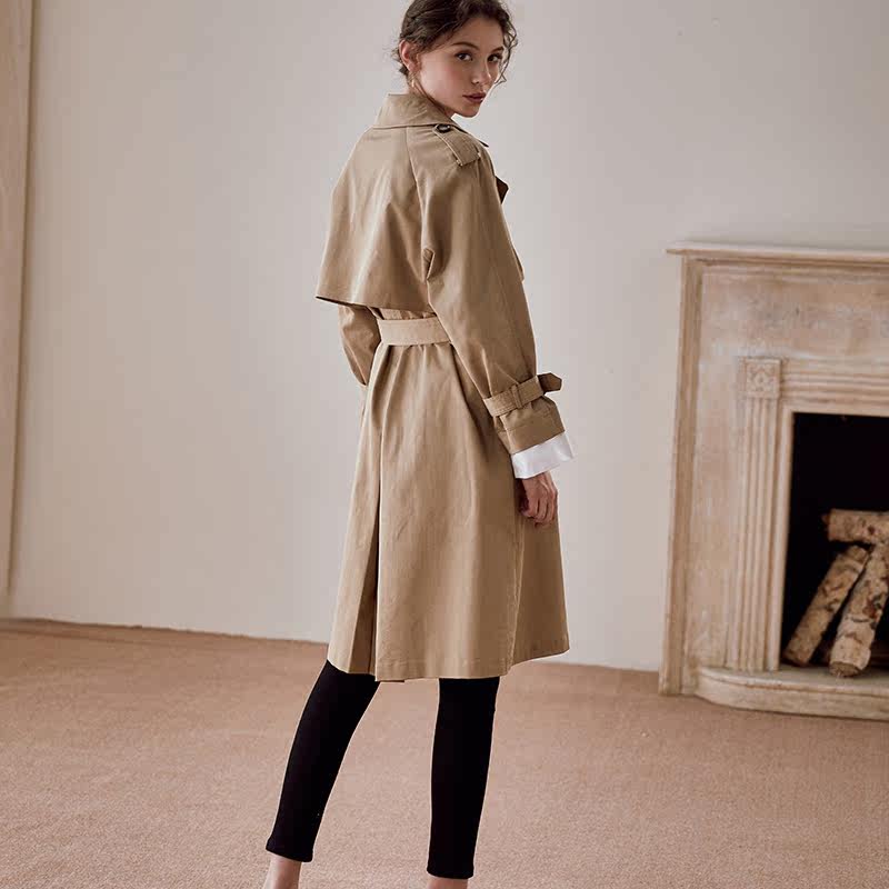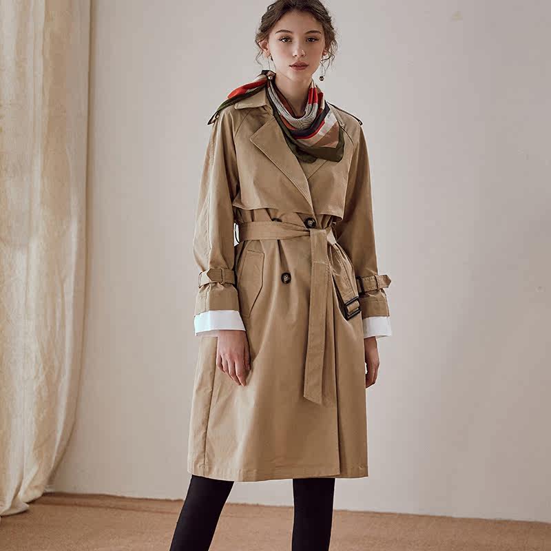 知性OL修身 风衣女春季 系带双排扣外套00621 英伦风中长款 罗衣经典