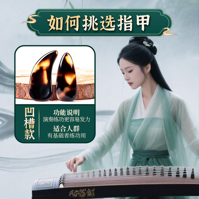 古筝指甲玳瑁颜色专业演奏成人凹槽初学者儿童摇指义甲大小号胶布