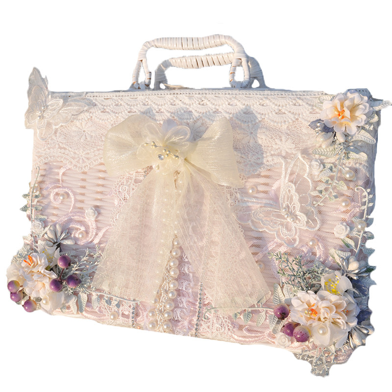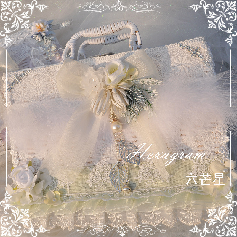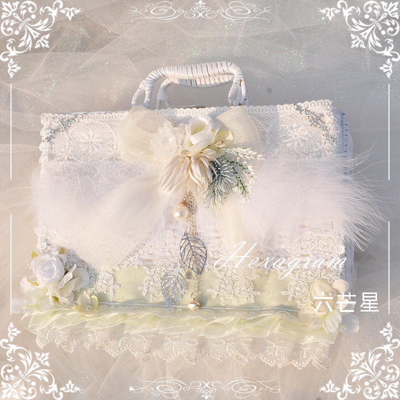 六芒星lolita花嫁少女心古典玩偶可爱羽毛手作洛丽塔手提野餐藤箱