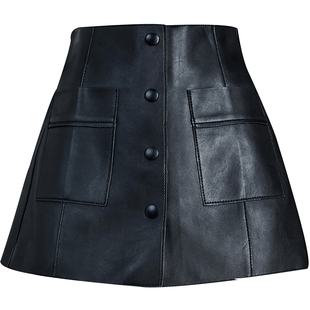 女2025冬新款 子靴裤 伞裙裤 绵羊皮休闲裤 假两件外穿海宁真皮裤 短裤