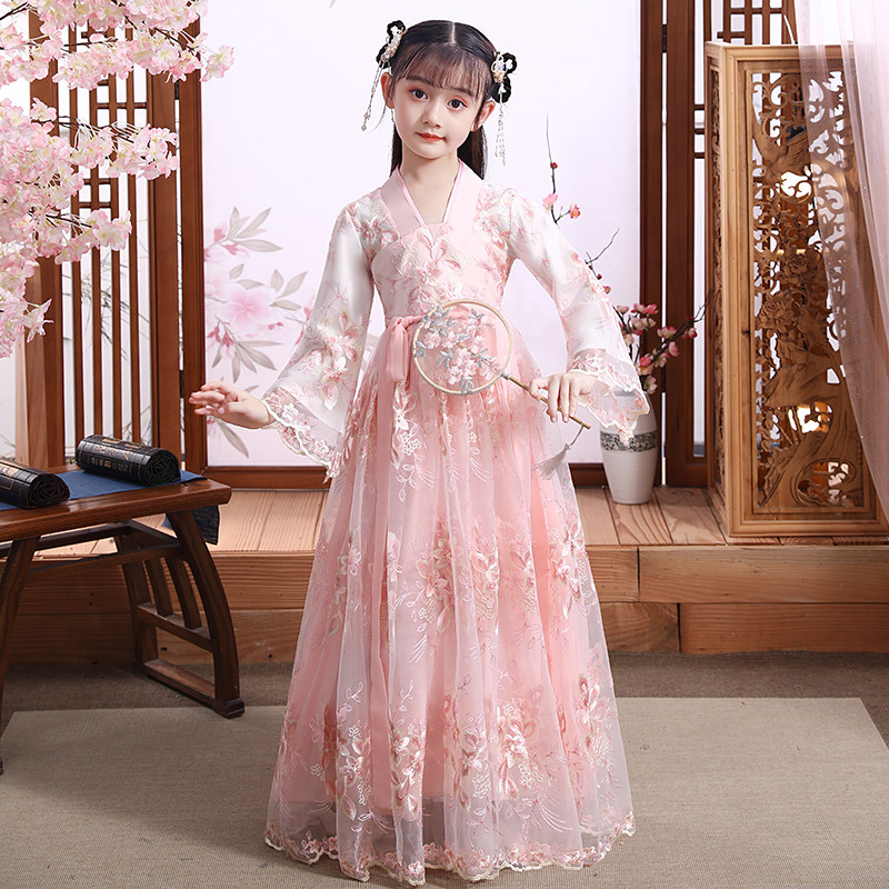 仙气12岁女孩 夏季 汉服女童儿童古装 超仙襦裙樱花公主中国风秋装