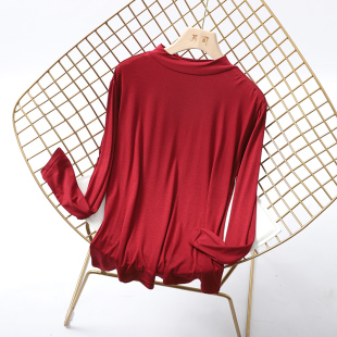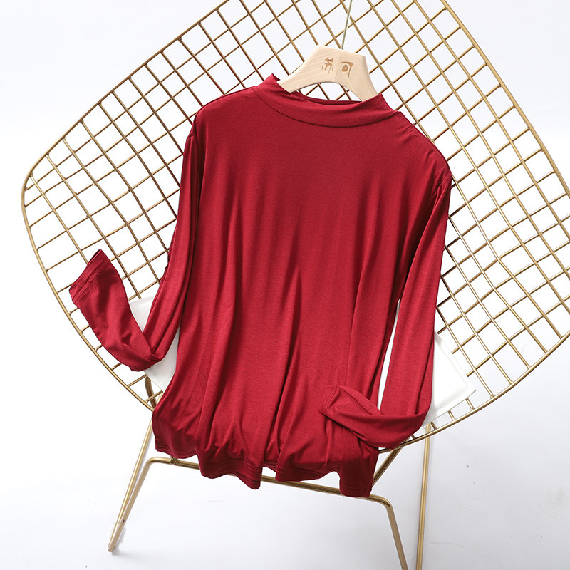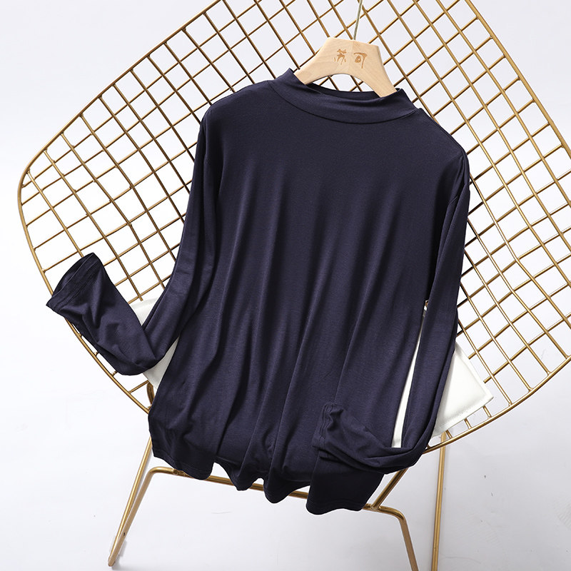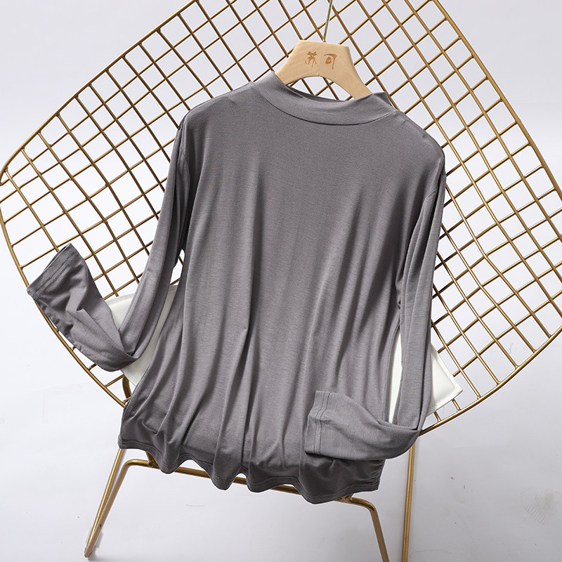 莫代尔半高领秋衣长袖 简约滑爽亲肤柔软保护颈椎打底内穿睡衣男女