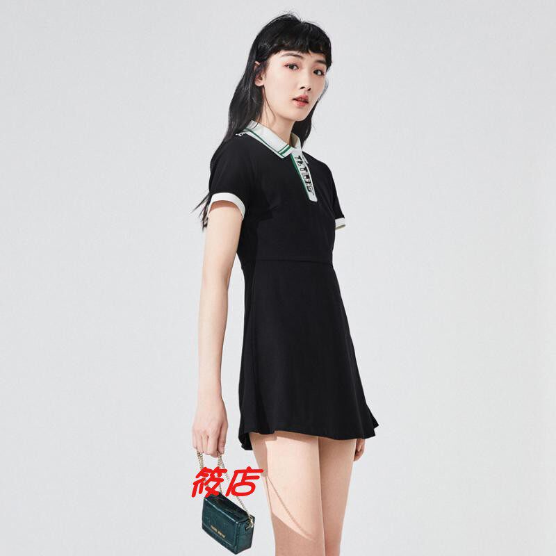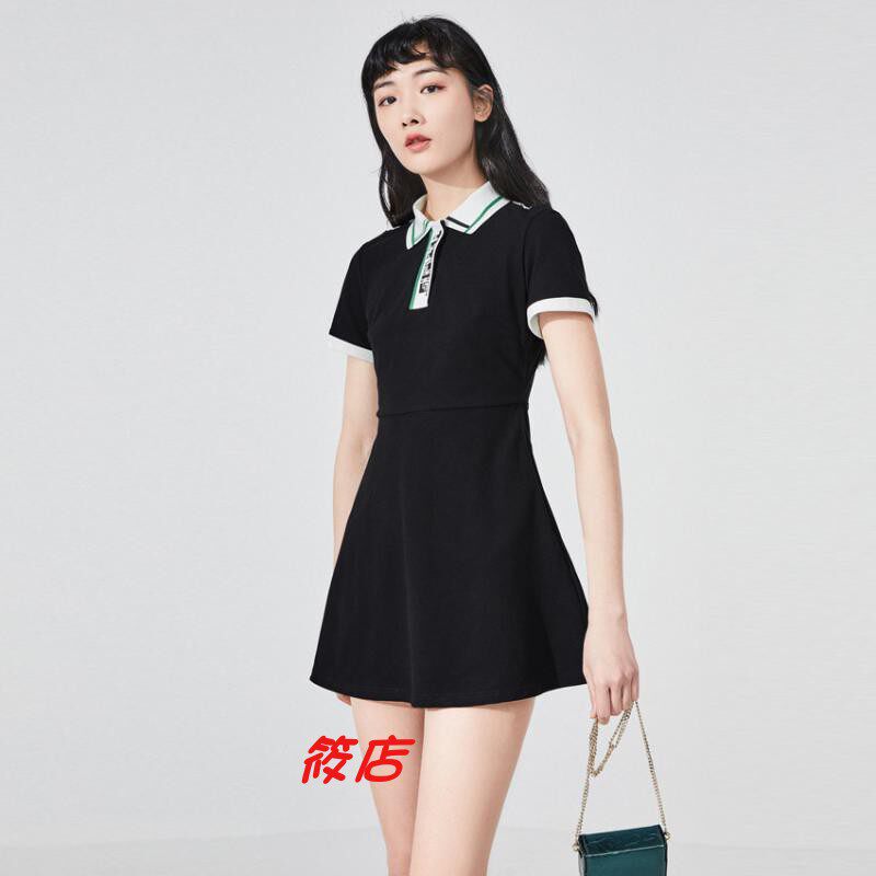 2020年夏季 俄罗斯方块POLO领黑色连衣裙A6FA9225089 A6FA92250女装