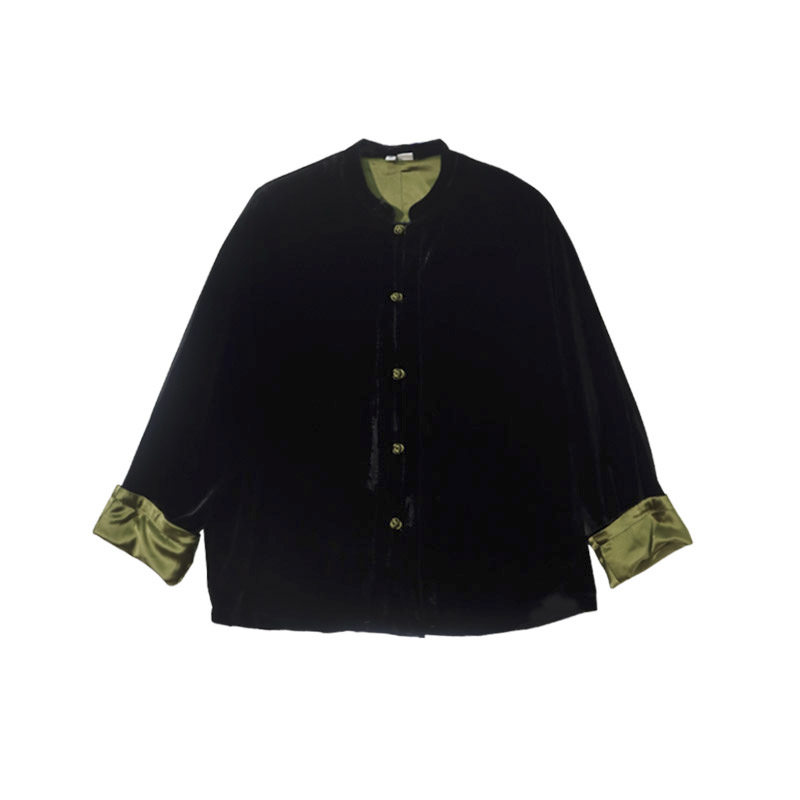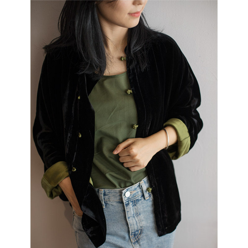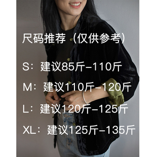 上衣女小众设计复古短外套 休闲开衫 艾绘馆春季 真丝丝绒黑色新中式