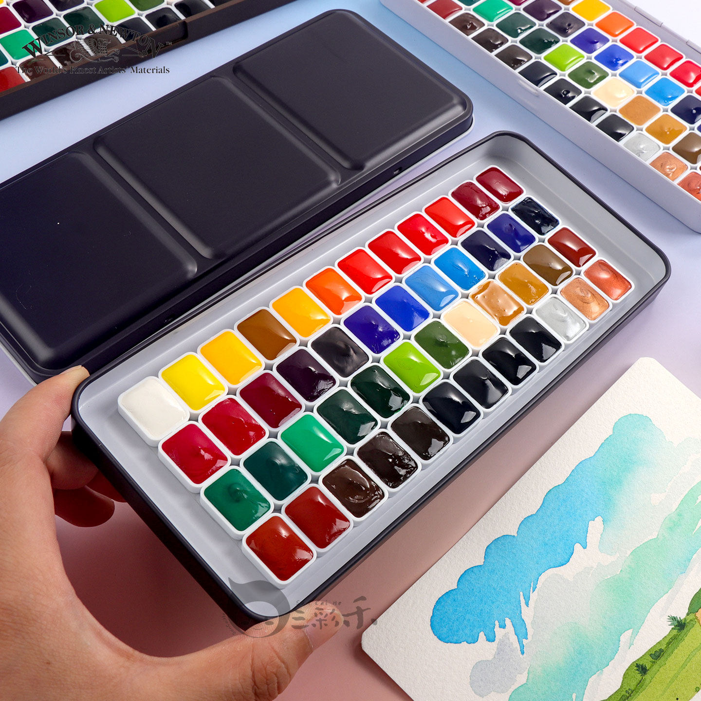 珠光水彩颜料小盒固体分装 全套爆闪美甲金色珠光 敦煌便携国风迷你水彩颜料盒180色美术专用水彩画套装