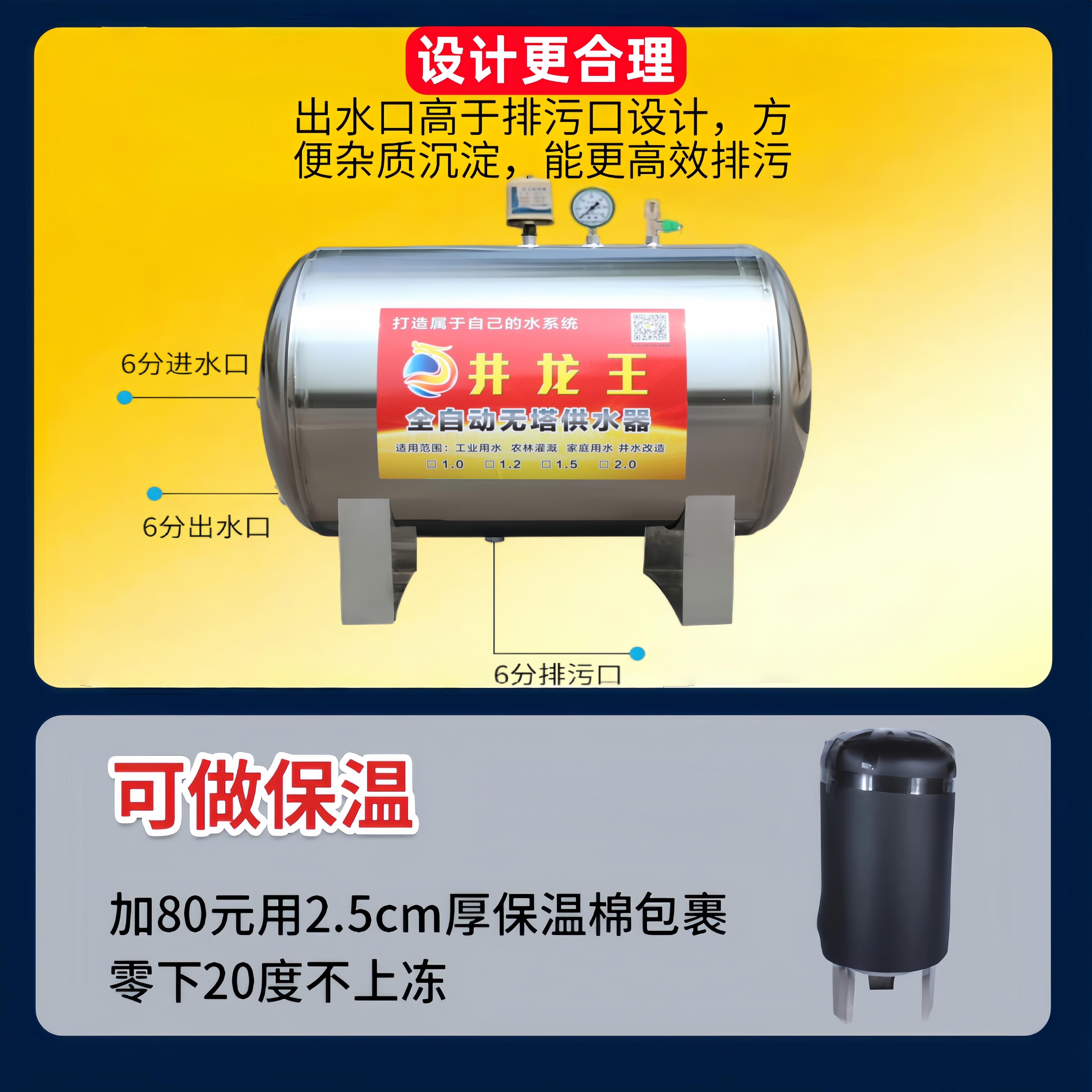 卧式 无塔供水器不锈钢压力罐家用全自动全套水塔水箱储水罐增压泵
