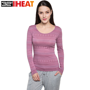 美国32度Heat发热超薄保暖内衣套装 男女打底圆领黑色白色秋衣秋裤