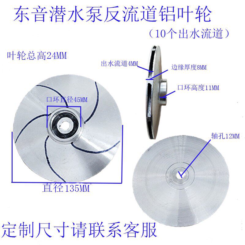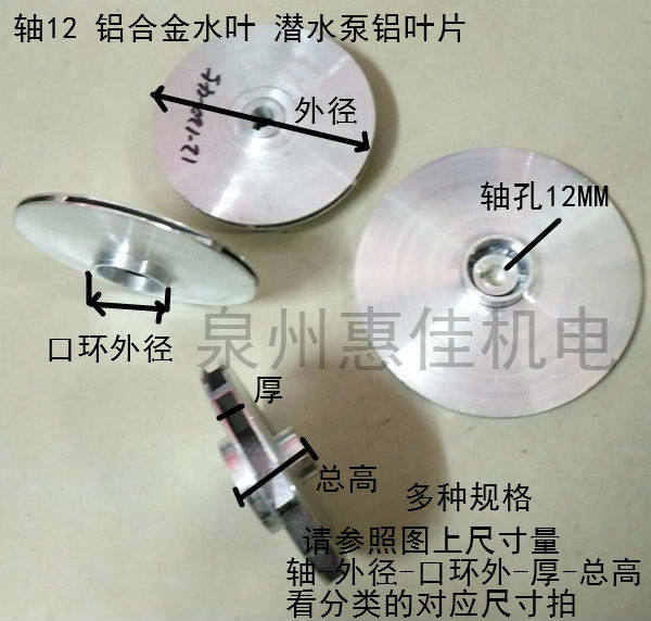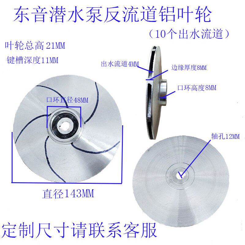 370 750W离心水泵配件反转铝叶轮水叶铸铝水轮键槽轴12铝叶片 550