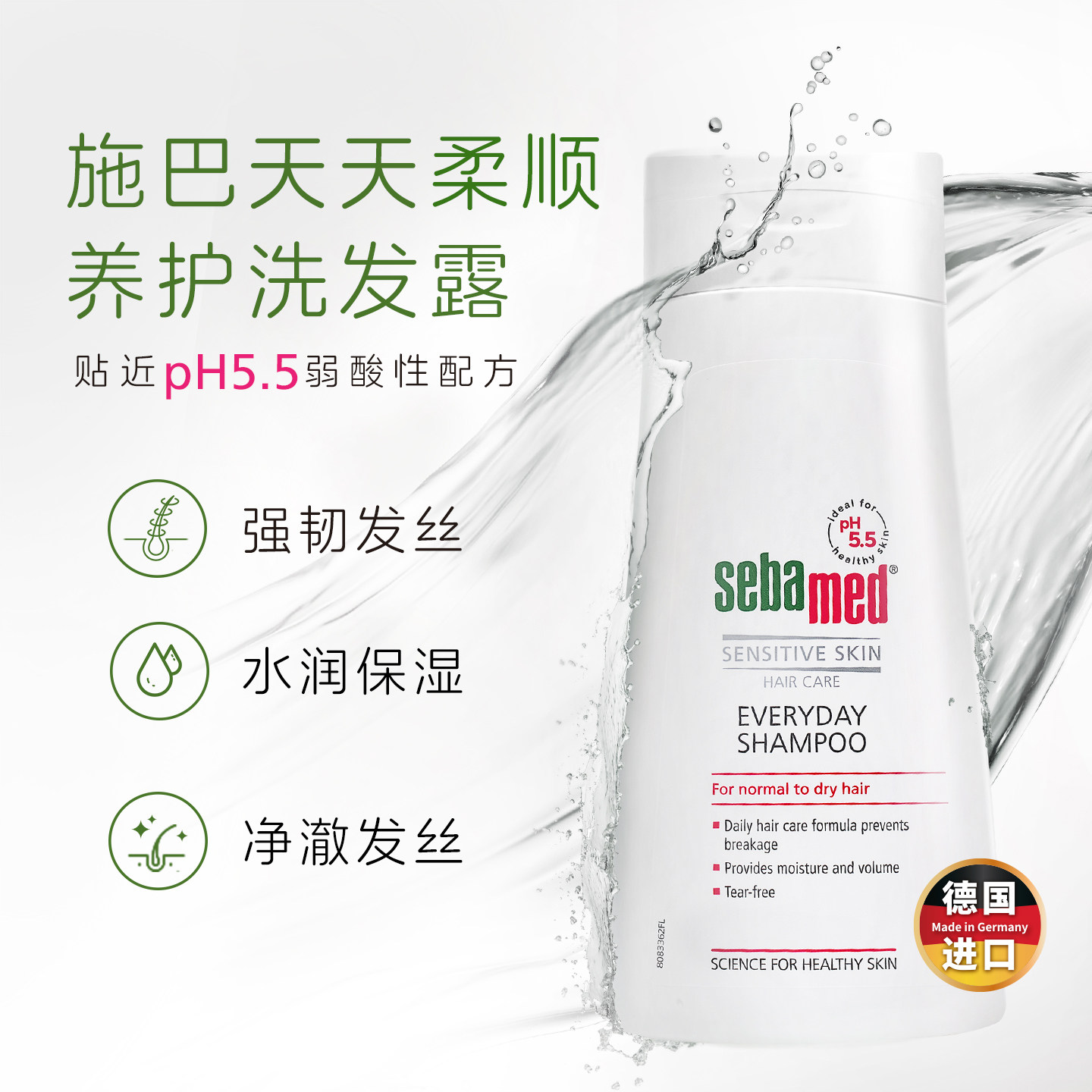 sebamed施巴柔顺养护洗发露顺滑男士 护发洗头水膏液德国 女保湿