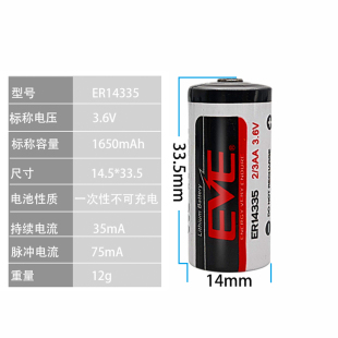 EVE亿纬锂能ER14335烟雾报警器硫化氢检测仪电池2 3AA3.6V锂电池