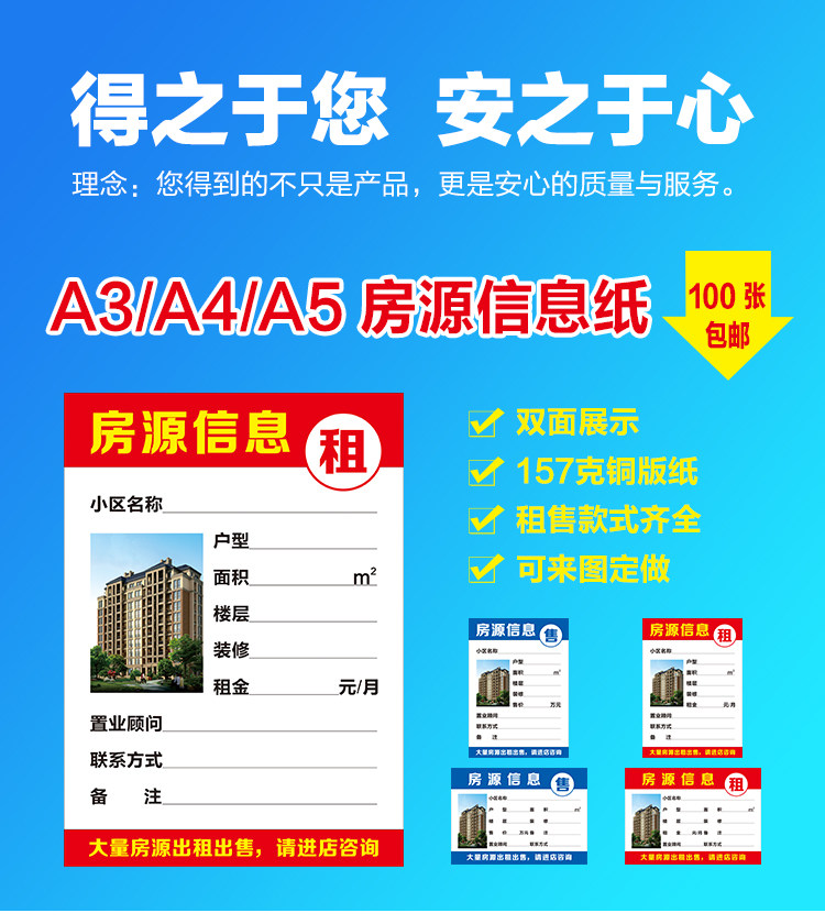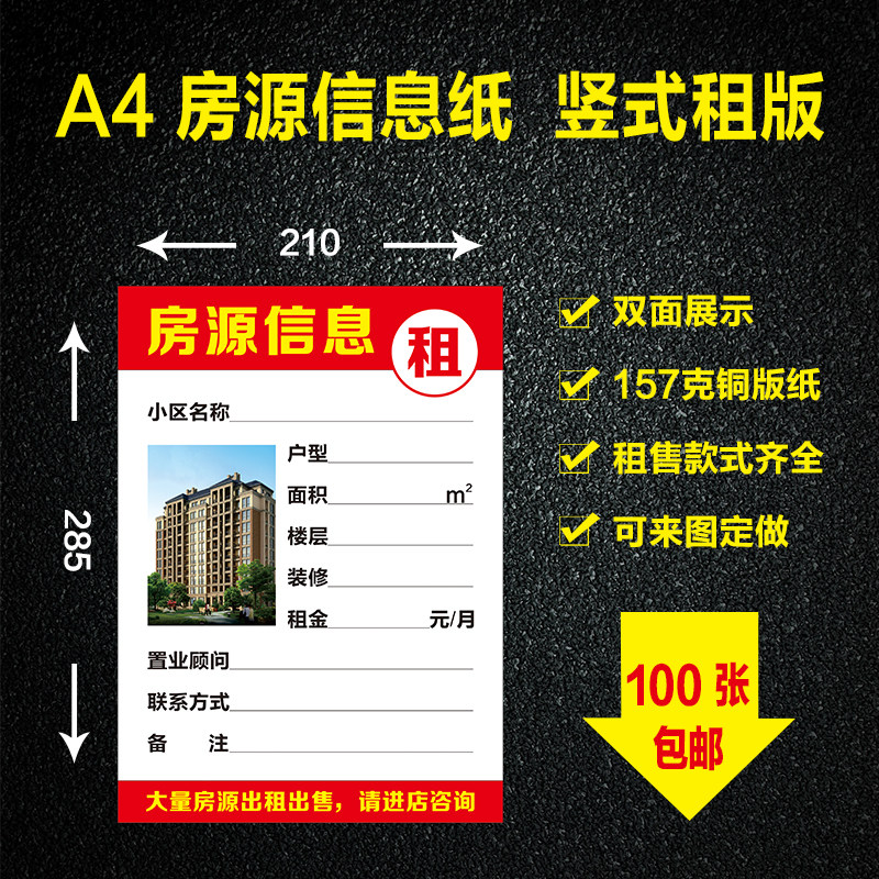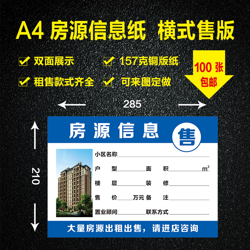 A4房产中介A3房源信息纸A5定制橱窗贴房屋租售定做单页展示广告纸