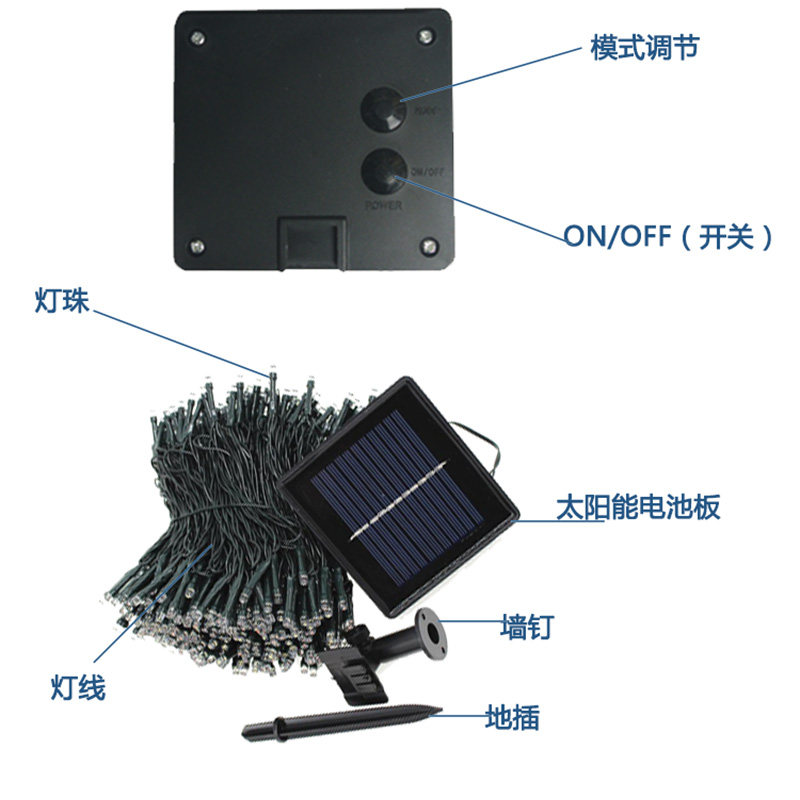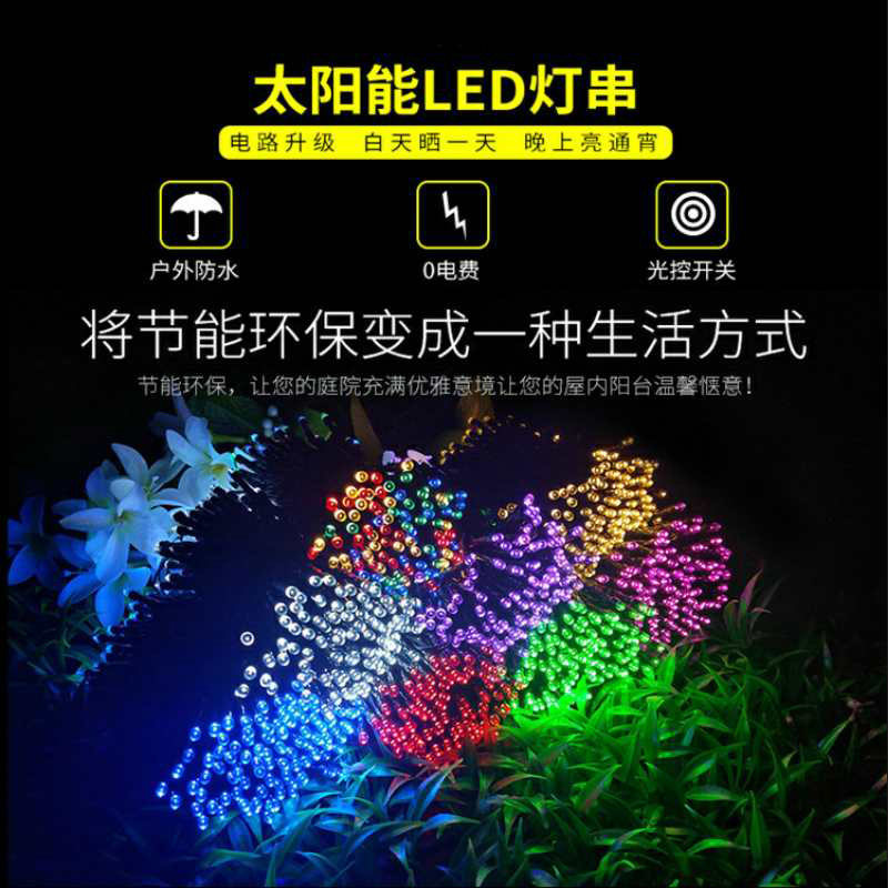 led太阳能彩灯串灯七彩变色户外防水灯带氛围灯树灯新年装 饰灯串