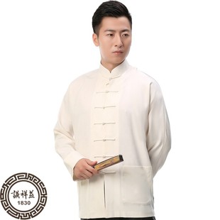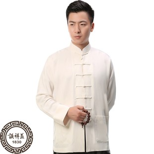 男真丝棉布立领民族休闲盘扣复古上衣 单衣唐装 中式 中青年春夏长袖