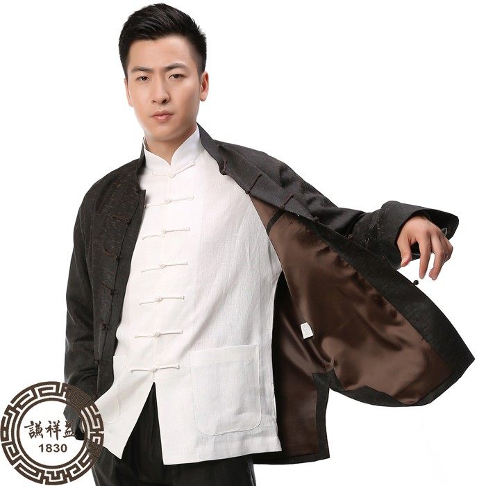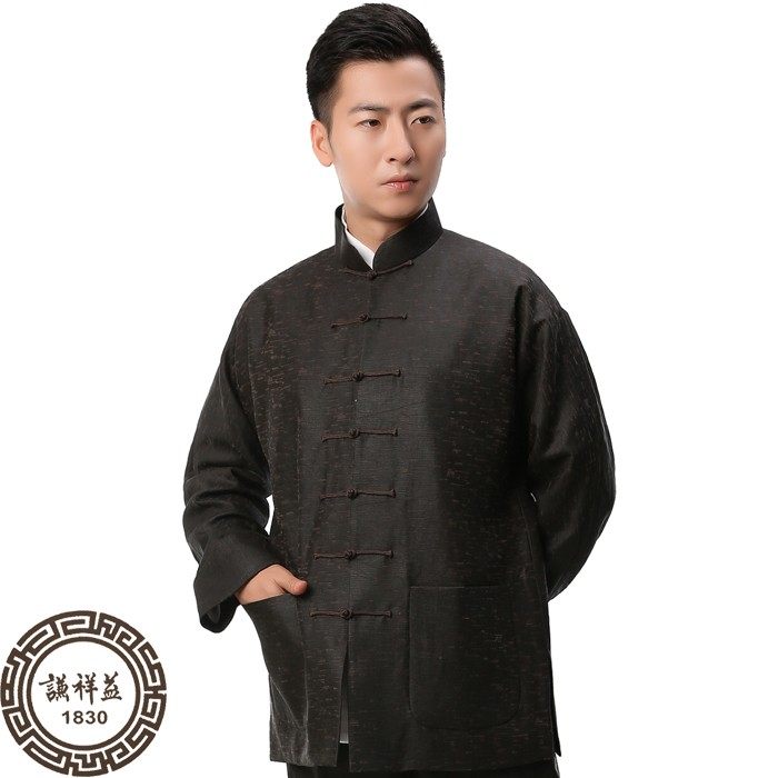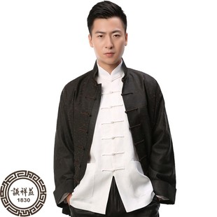 外套中式 春秋季 香云纱上衣高档真丝盘扣复古桑蚕丝礼服 男长袖 唐装