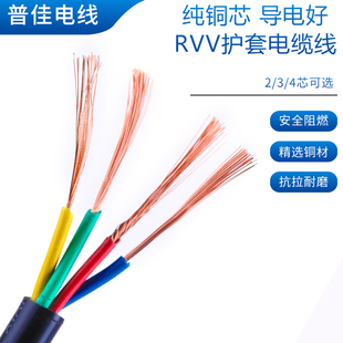 RVV纯铜芯三相软电缆2芯3芯4芯1.01.52.546平方监控电源线护套线