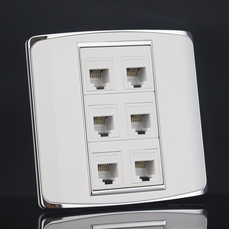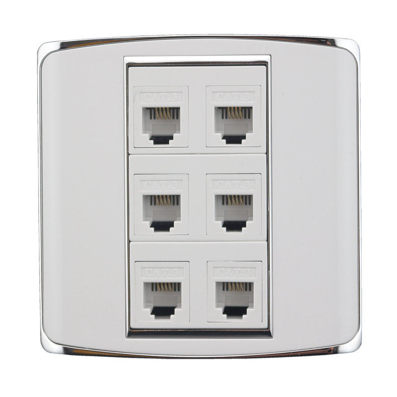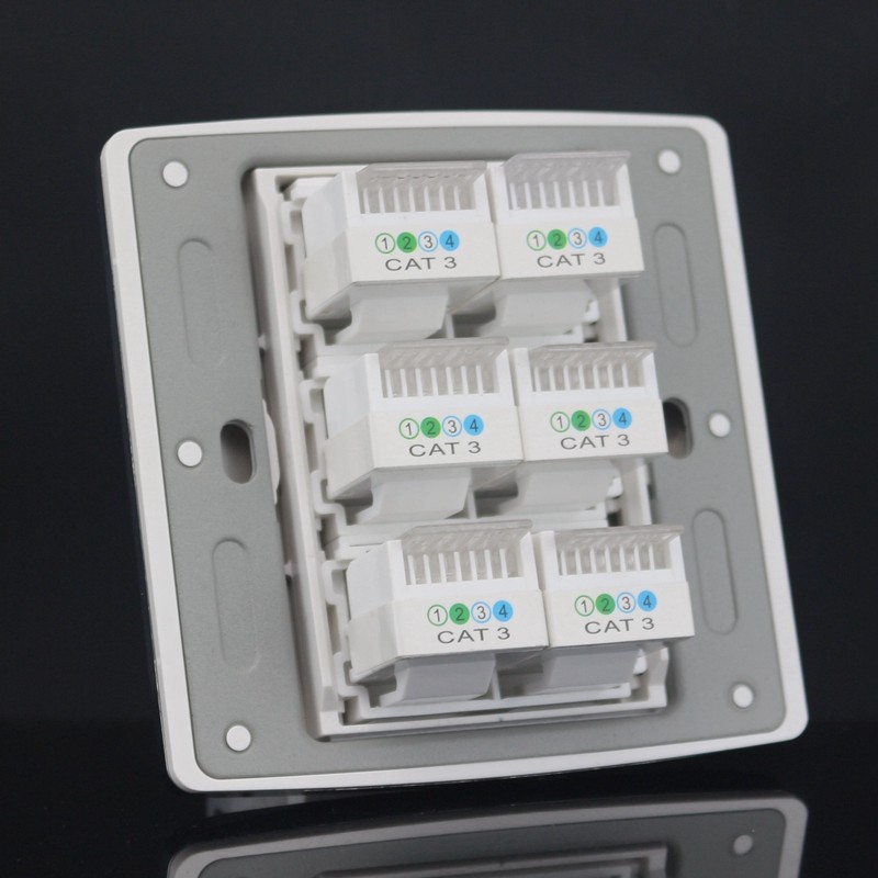 86型6口电话插座面板 六位CAT3免打线六孔语音电话墙壁开关插座