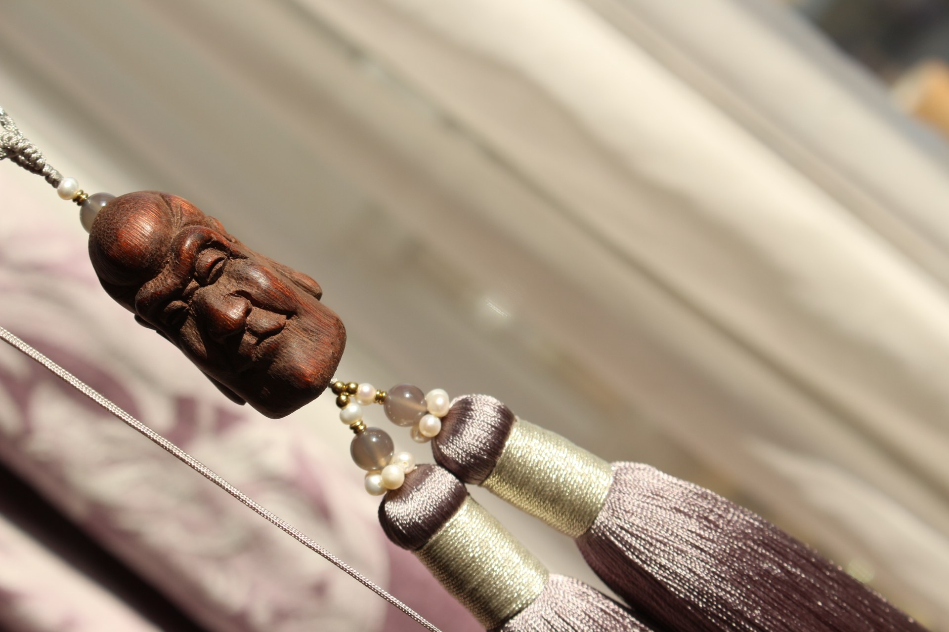 车挂饰 居家挂饰 孤品 真丝双流苏 老物件竹根雕罗汉
