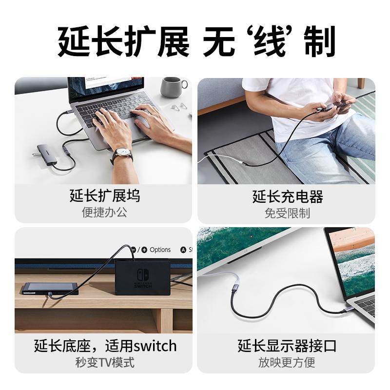 绿联typec延长线公对母口usbc3.1gen2数据线10gbs扩展坞c口转接加长适用苹果电脑任天堂switchPD充电ns底座