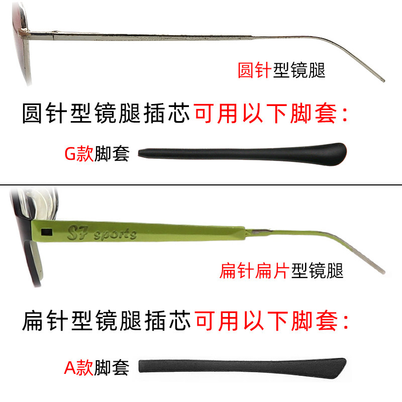 JGG眼镜防滑套眼睛配件镜腿脚套硅胶腿套金属细腿防磨耳套管软长