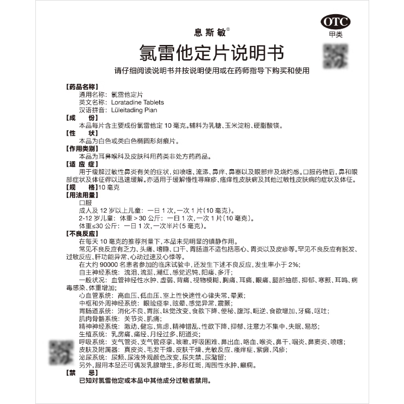 节过敏 6片皮肤过敏慢性荨麻疹过敏性鼻炎季 氯雷他定片10mg 24片
