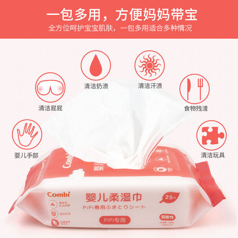 combi康贝婴儿湿巾宝宝防红屁屁湿纸巾新生儿便携湿巾纸25抽