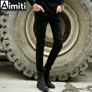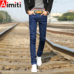潮流季 春夏韩版 百搭小脚裤 子修身 浅色牛仔裤 加绒弹力磨白长裤 男款